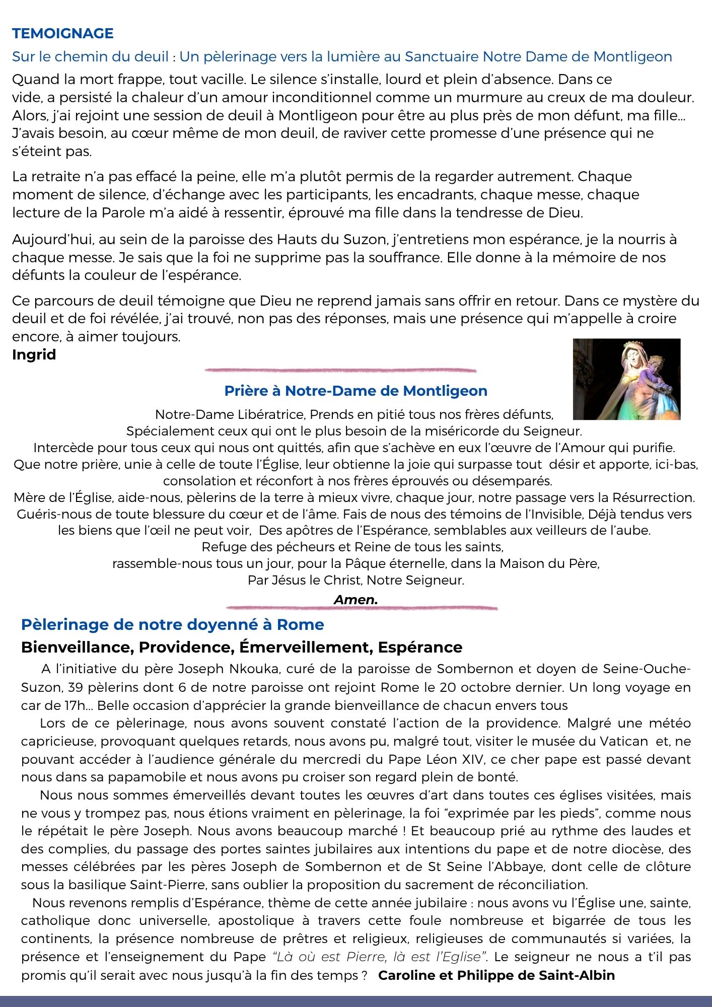 Pages 2 Témoignage « Sur le chemin du deuil » – Les paroissiens de notre doyenné en pèlerinage à Rome, prière à Notre Dame de Montligeon