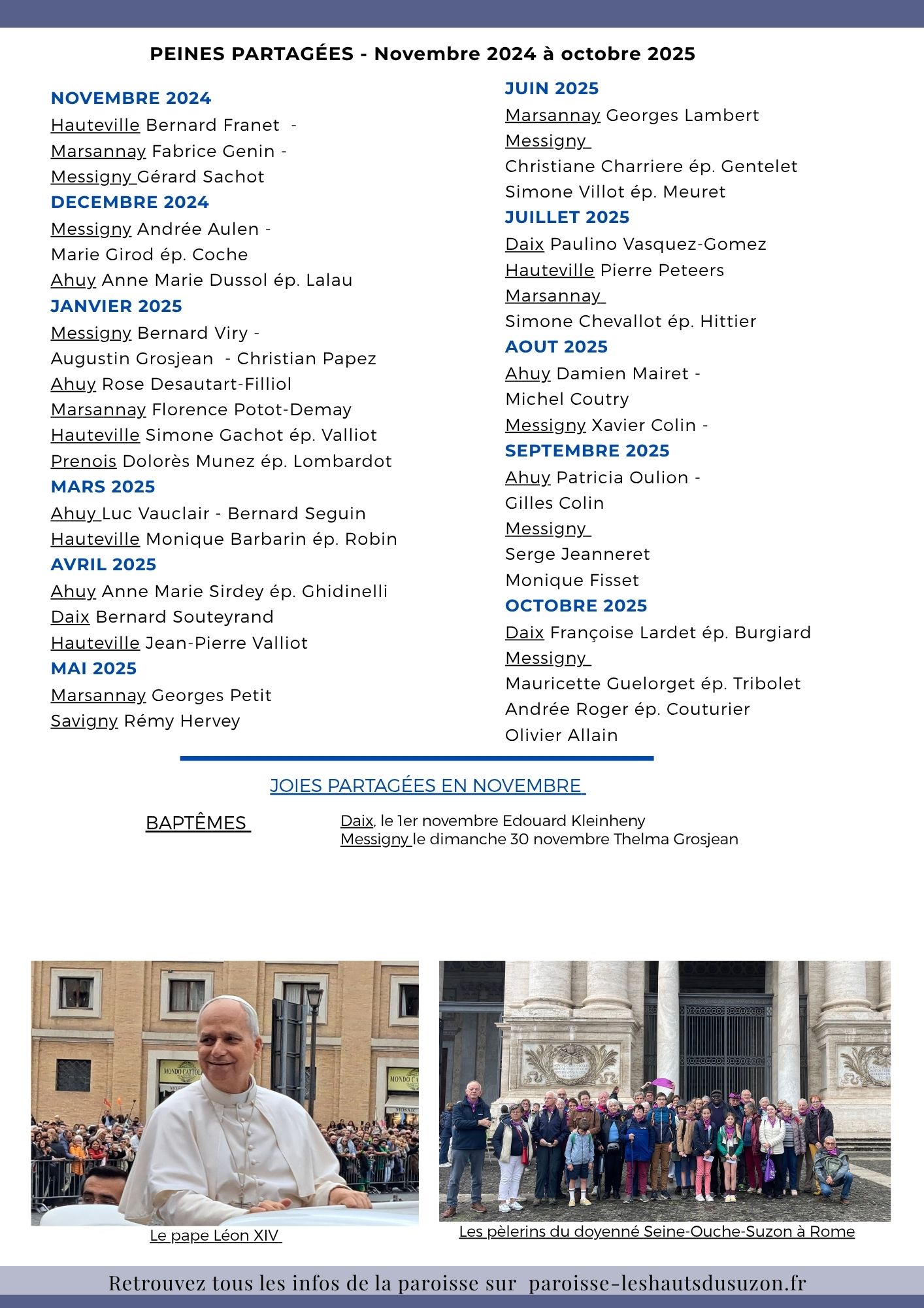 Page 3 : Peines partagées d’octobre 2024 à octobre 2025, joies partagées en novembre.