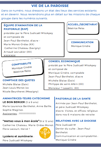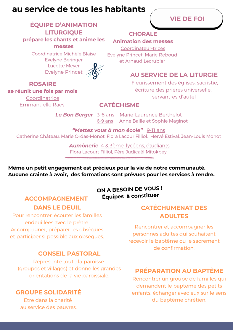 Pages 2 et 3 : « Vie fraternelle, vie de foi et gestion au service de tous les habitants » Toutes les équipes constituées et celles à venir