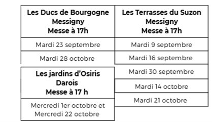 Le père Judicaël vous invite à vous joindre aux résidents des maisons de retraite lors des célébrations aux dates suivantes :